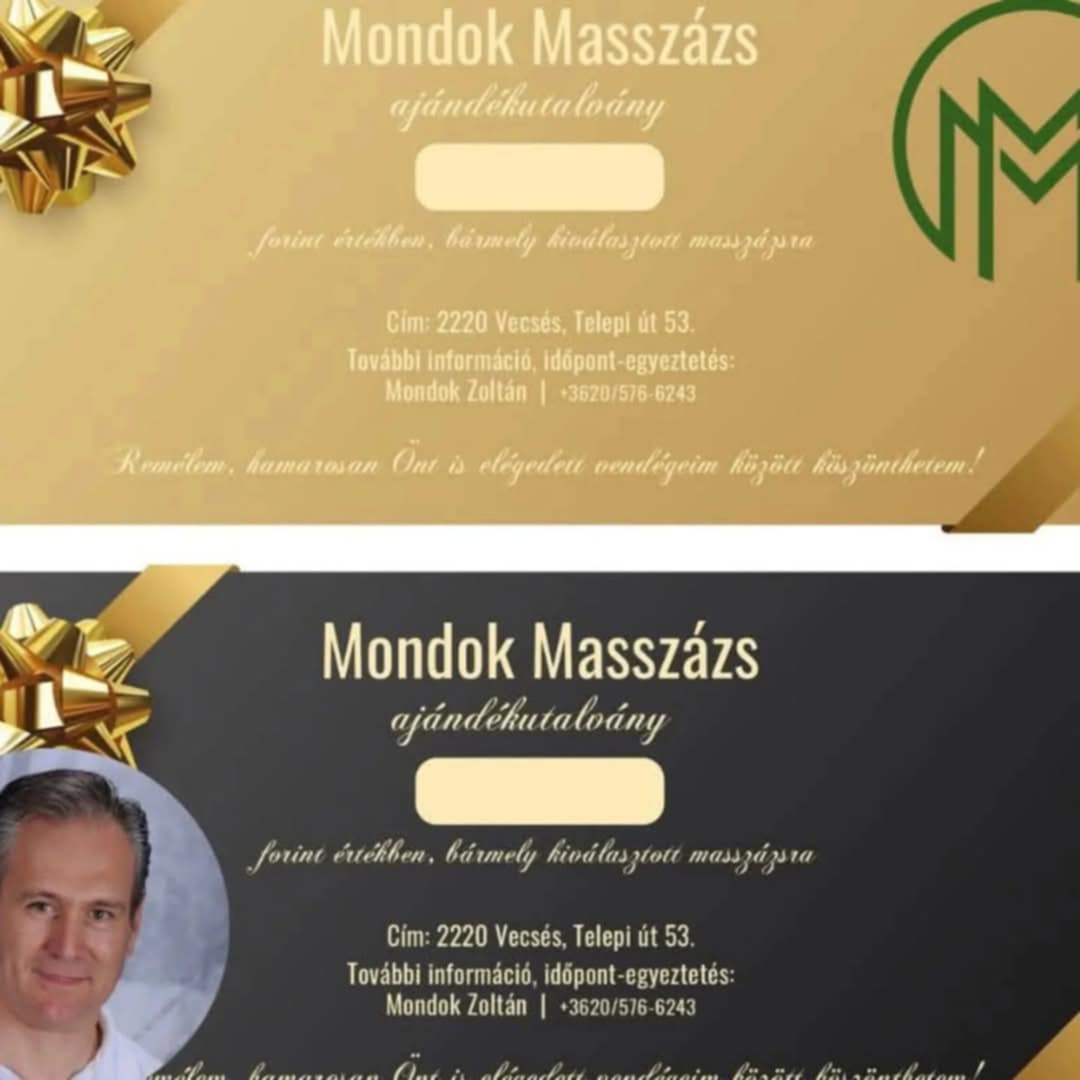Bármelyik masszázsomat lehet választani ajándékkártya formájában.